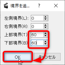- 今回の場合は上と下の60と入力して[OK]ボタンを押します。