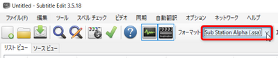 - 字幕ファイルの形式を選択する。今回はフォーマット欄からSub Station Alpha(*.ssa)を選択。