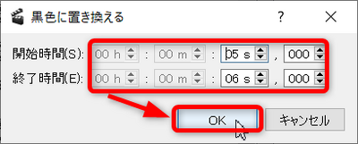 - 黒駒に変更する部分を時間で指定して[OK]ボタンを押します。
