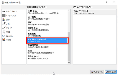 - [拡大縮小 swScale]を選択する。