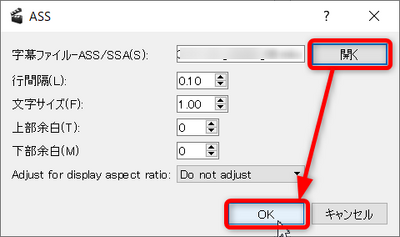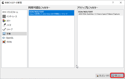 - [字幕]-[SSA/ASS/SRT]をダブルクリックする。