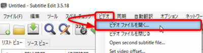 - メニュー[ビデオ]-[ビデオファイルを開く]からビデオを開く。