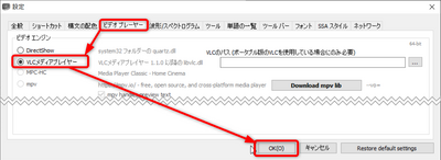 - [ビデオプレイヤー]-[VLCメディアプレイヤー]を選択して[OK]ボタンを押す。