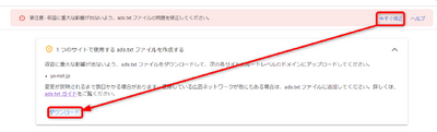 「AdSense 「要注意 - 収益に重大な影響が出ないよう、ads.txt ファイルの問題を修正してください。」対応方法」を編集中