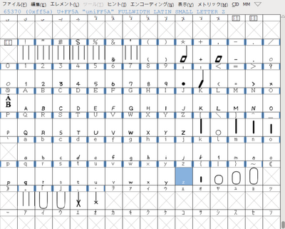作ったなぁ。かなり頑張った。フォントなんか初めて作った。疲れた。内職みたいな単調な作業の連続。メンドクサさが物凄い。こんな感じで平仮名とかカタカナとか作ると思うとゾッとするね。偉大だわ。誰かが頑張ってるんだな。スゲェぜ先人たち。このフォント作成アプリ作った人も凄いけど。