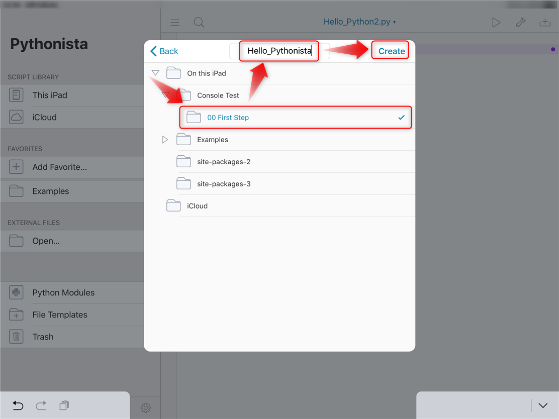 ファイル:Pythonista3 newEmptyScript Create.png