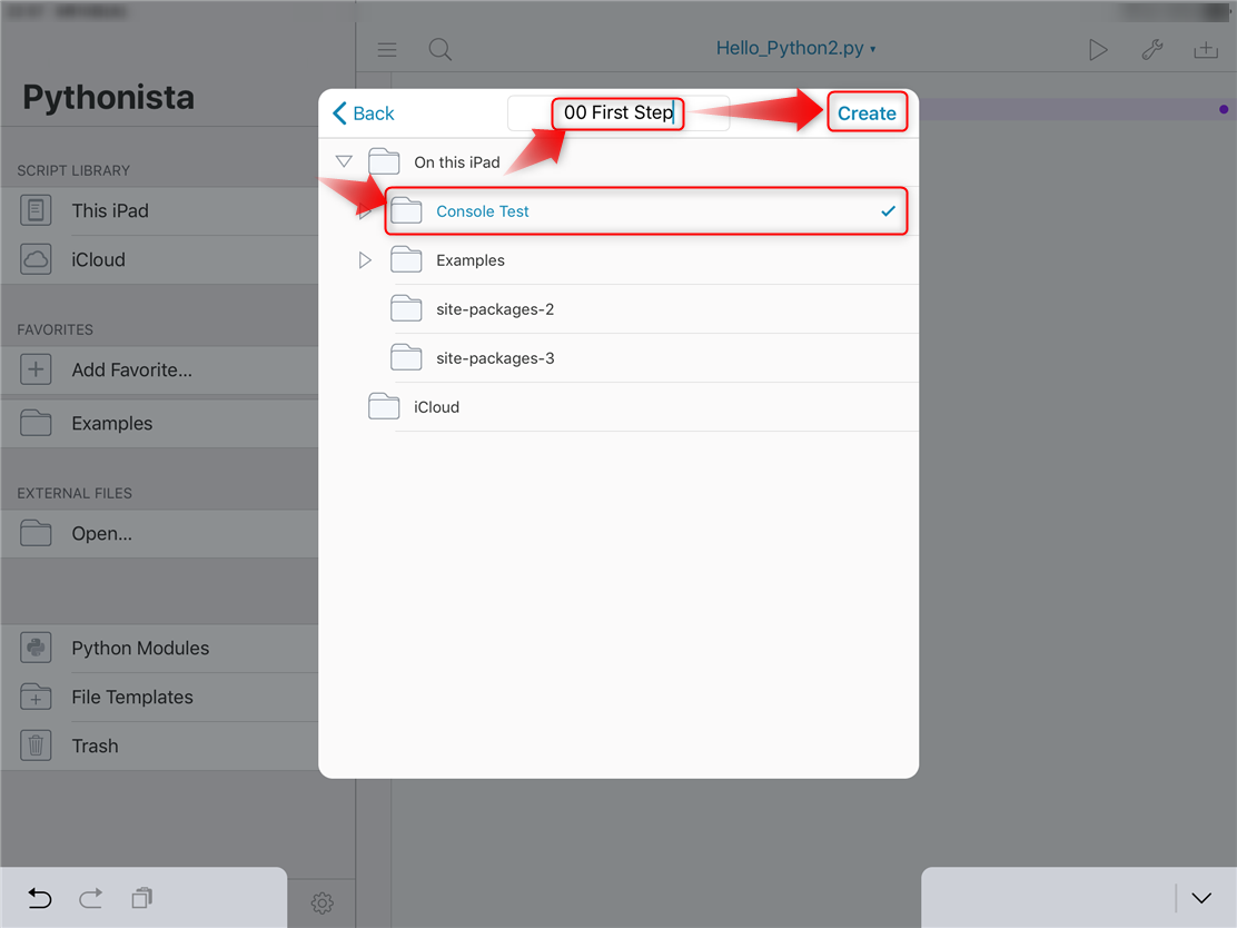 ファイル:Pythonista3 new folder Create.png