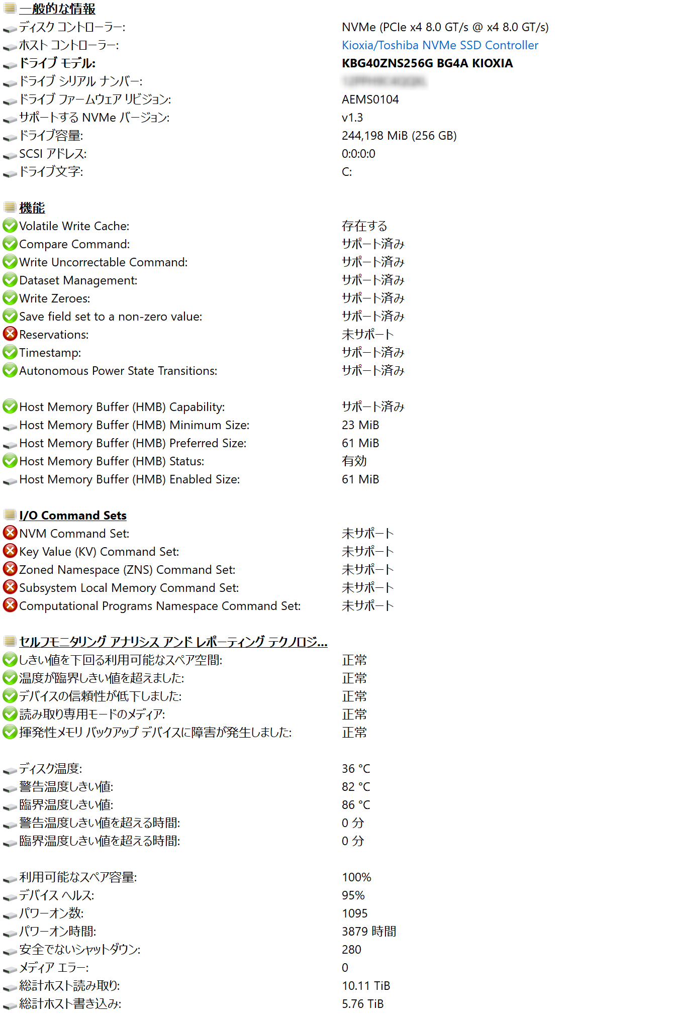 ファイル:Surface Pro 8 HWiNFO Disk NVMe KBG40ZNS256G BG4A KIOXIA.png
