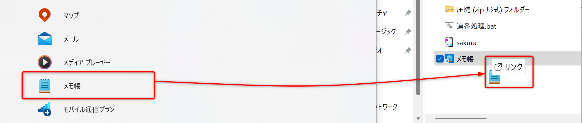 ファイル:Windows11 NotePadShortcutStartMenu2Sendto.png