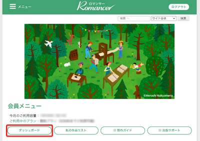 会員メニューのトップ画面になるので、ダッシュボードを選択します。