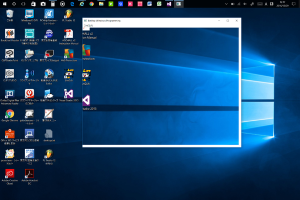 こんな感じですね。自分のPCのデスクトップの状態を惜しげもなく公開です。Dynapad N72は画面が1920x1080というFullHD表示ですが、分解能が細かすぎるため拡大機能が使われています。自分は100%のままでもいいかなとはおもうのですが、125%拡大で使っています。でも、プログラムの方は、なんか違う倍率の表示になってますね。なんじゃこれ?なんか調べなきゃいけないこと増えてるなorz。Live2ch、FL Studio12、ClipStudioPaintEx、MicrosoftOffice Excel2010/Word2010、Chrome、Adobe Creative Cloud/Acrobat DCを追加でインストールしてますね。