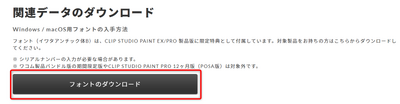 - 選択したリンクは同じページ内の下の方にある部分に移動するだけのリンクで、ちょうど関連データのダウンロードの項目についての情報が記述された部分に移動します。移動した先にある「フォントのダウンロードを選択します。