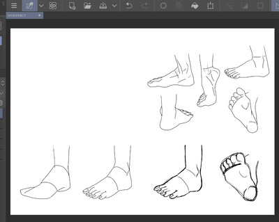 2023年3月中旬某日。足を描く。シンプルな割には拡大された足を描くのは難しい。足を大きく描くと進撃の巨人みたい。遠景でしか書いたことなかったかも台形を描くだけの足。あ、靴はいてるわ。