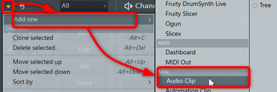 - チャンネルラックからオーディオクリップを追加します。