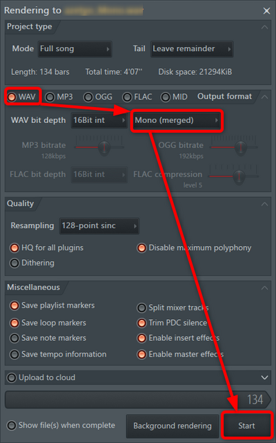 - mono(merge)の設定にしてStartボタンを押す。