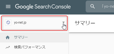 1.Google Search Consoleの左上当たりのところにある部分をクリック。