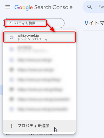 - 左側のメニュー一覧のプロパティ選択リストボックスから、目的のドメイン、アドレスを選択。例 wiki.yo-net.jp など、選択肢は適切なアドレス分類をしながら自分で作れる。