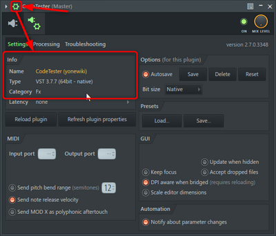 FL STUDIOで読み込んだVSTの情報は以下のように表示されます。