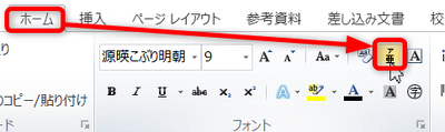 「ホーム」リボンタブのルビアイコンとルビを設定するためのダイアログが立ち上がります。まずはここでルビを設定しましょう。