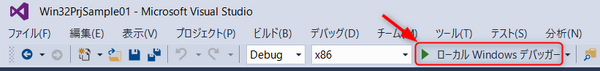 - デバッグの開始もいろいろ操作方法がありまして、メニューの「デバッグ」-「デバッグの開始」を選択しても同じことです。あとはツールバーのコレをポチっと押したりしても同じです。